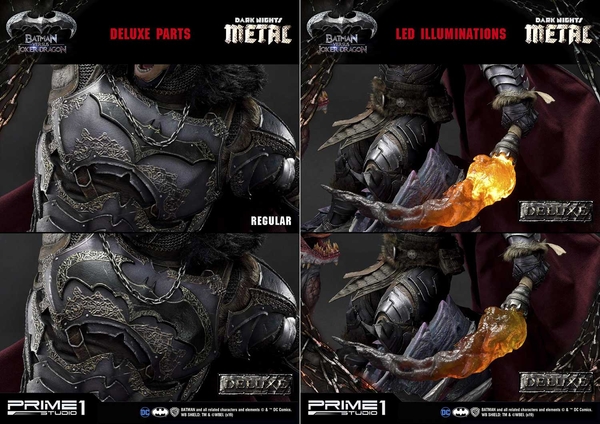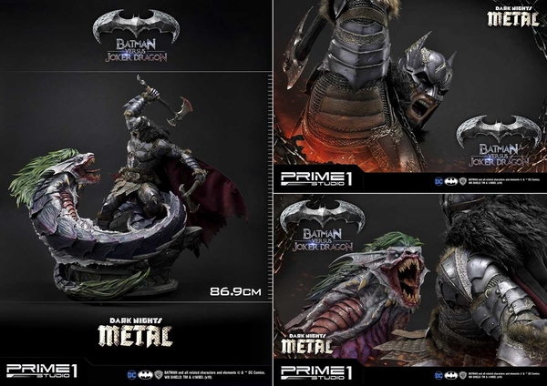 DCコミックス『ダークナイツ:メタル』ミュージアムマスターラインシリーズ第2弾。数ある並行世界の深淵部ダークマルチバースより現れた悪魔、バルバトスが操るバットマン フー・ラフズのもとへ向かう為バットマンは闇の世界でジョーカーとよく似たドラゴンと戦う。