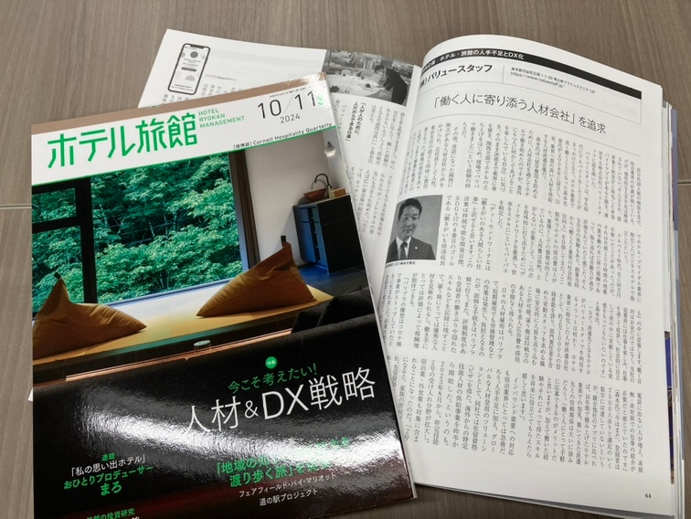 宿泊産業の専門誌『ホテル旅館』10/11月号に、代表・森本のインタビュー記事が掲載されましたのでお知らせいたします。『ホテル・旅館の人手不足とDX化』という特集にて、パーパスや海外人材事業に関してお話をさせていただいております。ぜひご一読ください。