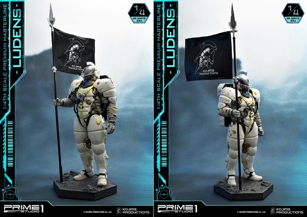 「遊びを届ける」という思いを胸に、ゲームクリエイター小島秀夫氏が立ち上げた『コジマプロダクション』。そのシンボルキャラクターが『ルーデンス』である。その同プロダクションの顔となるキャラクタースタチューを、プライム1スタジオが1/2Scaleで制作しコジマプロダクションオフィスロビーや様々なイベントで展示されている。本アイテムはその1/2Scaleのルーデンスを1/4Scaleに落とし込み、より広いファンへ手に渡る物とすべく商品化。もちろんコジマプロダクション完全監修のアイテムとなっています。頭部のヘルメットと本体には1/2Scale同様にLEDライトアップ機能を内蔵。手にしたフラッグにはワイヤーが埋め込まれ、自由に表情づけが出来る仕様。