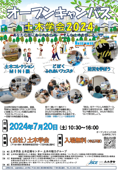 公益社団法人土木学会(会長 佐々木 葉)は、7月20日(土)に、『オープンキャンパス土木学会2024』を開催いたします。