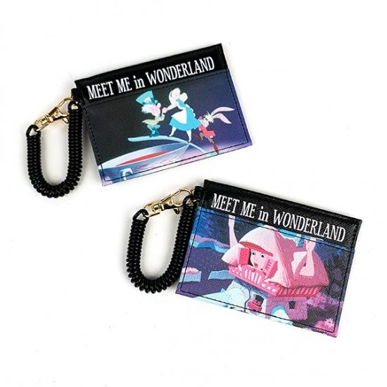 こちらは、シングルパスケースです。片側にはアリスのデザイン、反対は無地仕様でアリスのロゴが入っています。コードストラップは伸縮するので、バッグに付けたままで使うこともできちゃいますよ。