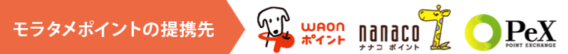 「ポイ活」とは、ポイントを貯めてお得に生活することです。モラタメでも商品の申し込み*やクチコミ投稿でポイントがもらえます。コメント投稿で50pt(50円相当)、ブログ投稿で100pt(100円相当)のポイントが付与されます。貯めたポイントは、提携先ポイントに交換することができます。キャンペーンを活用しよりお得に商品を試していただいた後は、クチコミを投稿して「ポイ活」をお楽しみください。