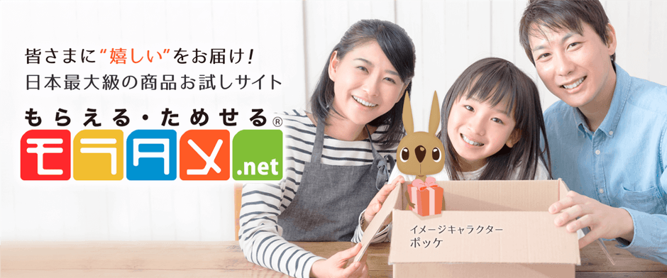 モラタメ.netは、日本最大級のお試しサイトです。2019年9月に登録会員が100万人を突破。話題の商品が無料でモラえたり、商品価格の半額程度でタメせたり、さらに、クチコミ投稿でポイントをもらえたりと、お得がいっぱい!大手メーカーから地方の老舗メーカーまで、多岐にわたる商品を掲載しています。商品を試した後に投稿されるクチコミは、「お役立ち情報」として、生活者に届けています。また、メーカーの商品担当者は、モラタメを通じて投稿された自社商品のクチコミを、商品開発や商品プロモーションなどに役立てています。