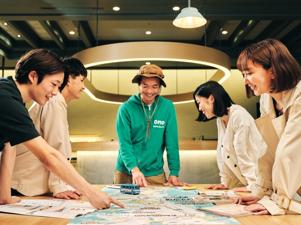 OMOレンジャーが卒たびを全面的にバックアップします。ホテル到着後は、ロビーラウンジ「OMOベース」でオリジナル路線バスマップを広げて作戦会議!旭川市内の路線バスの基本的な乗車方法から、各コースのルート案内、どのようなスケジュールで巡ったら良いかなど、不安要素を全て解決します。また出発後に途中で迷い、バスに乗り遅れてしまっても、電話一本でOMOレンジャーが立て直しをサポートするので、ご安心を。