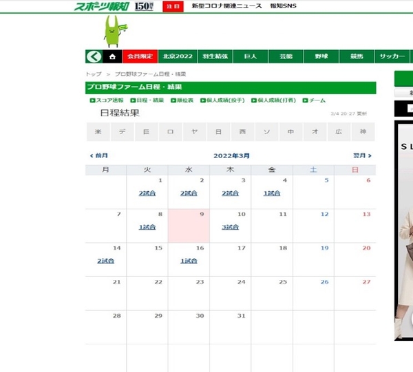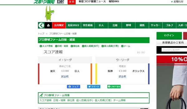 さあプロ野球開幕!2軍戦も無料1球速報スタート【スポーツ報知WEBサイト】