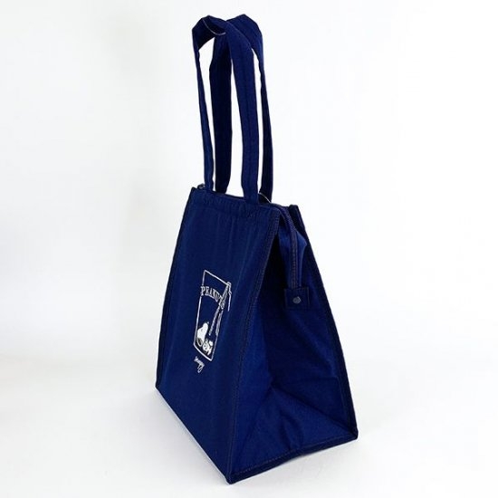 ネイビーの本体にグラスに入ったスヌーピーのデザインがかわいい、ランチバッグです。縦長のフォルムで、スタイリッシュな雰囲気もありますよね。持ち手部分も長めなので、肩にかけることも◎
