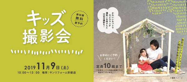 マンション専門リフォーム会社 サンリフォーム(本社:大阪市西区)は、11月9日(土)にサンリフォーム京都店でプロカメラマンが撮影する「キッズ撮影会」を開催します。