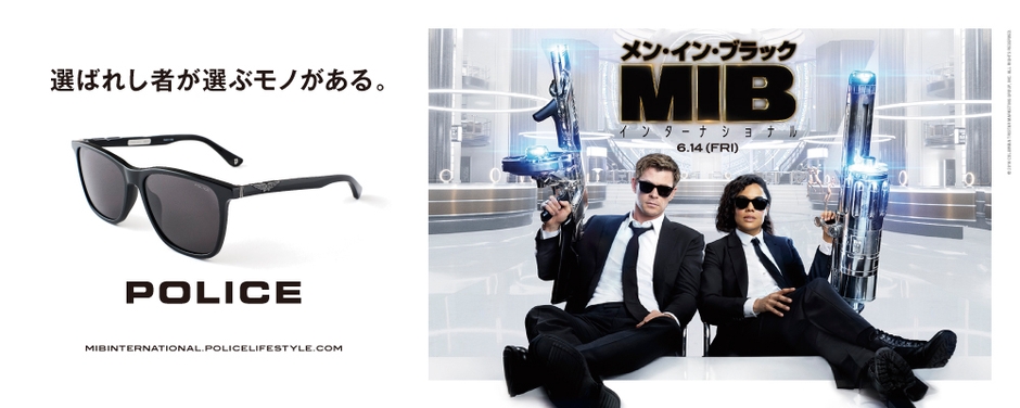 ポリスは、アイウェア界のリーディングカンパニー、デリーゴのハウスブランドです。1983年に誕生し、洗練されたデザインと力強いイメージでブランドを確立してきました。この夏に新発売されたモデルSPL872Iは、6月14日に日米同時公開された映画「メン・イン・ブラック:インターナショナル(MEN IN BLACK: INTERNATIONAL以下、MIB」で、主人公エージェントのクリス・へムズワース(Chris Hemsworth)とテッサ・トンプソン(Tessa Thompson)が着用。イベント企画期間中は、新作&定番の人気モデルをはじめSPL872Iなど約70本を展示発売します。