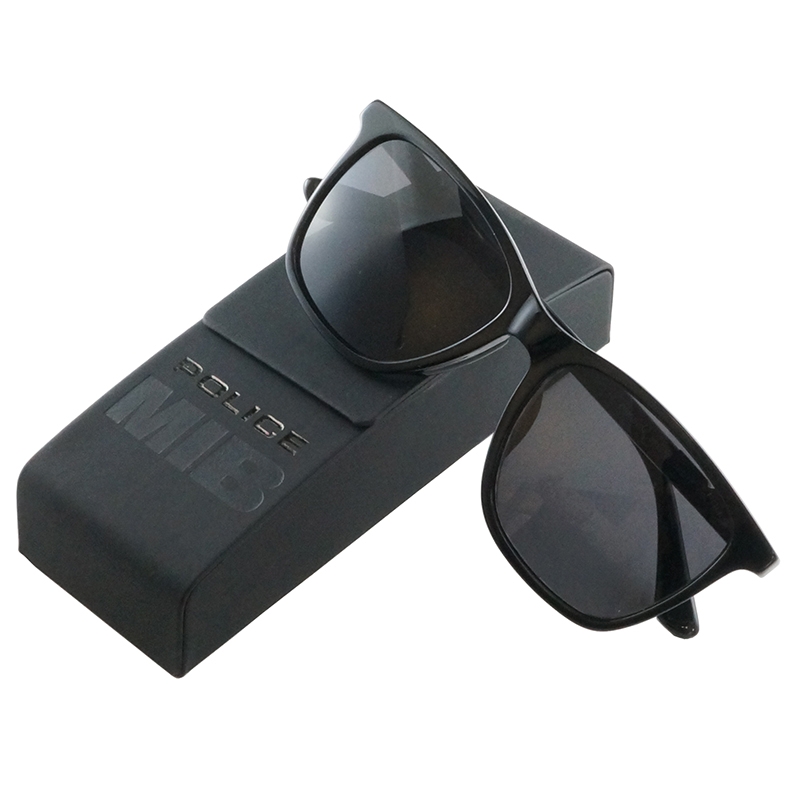 付属するケースもポリスとMIBコラボの証として両方の名が刻印されたオフィシャルサングラス仕様になっています。