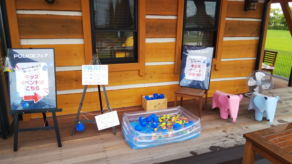 お子様連れのお客様には、“スーパーボール”&“POLICEオリジナルデザインヨーヨー釣り”をお一人様一回無料で実施いたします。ご家族でお楽しみいただけるイベントです。※開催は10:00~18:00 雨天などにより終了時間を変更する場合がございます。