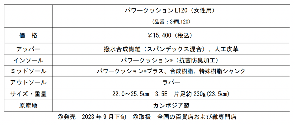 ヨネックス株式会社(代表取締役社長:アリサ ヨネヤマ)は、衝撃吸収性と反発力を併せ持つ素材「パワークッション®プラス」を搭載し、弊社ウォーキングシューズのコンセプトである「軽い。疲れにくい。ひざにやさしい。」を追求した「パワークッション L120(女性用)」を2023年9月下旬より発売いたします。
