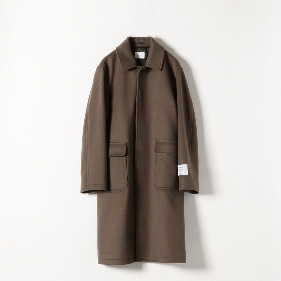 120番の高級ウールと米国デュポン社のSOLONAというエコな糸をミックスしたメルトンバルカラーコート。