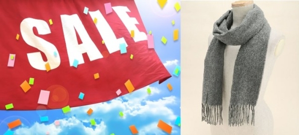 ・百貨店向けにストールや傘を生産している服飾雑貨メーカーです。百貨店ランクの商品を卸価格で直接ゲットできる年に1度の冬物セールです