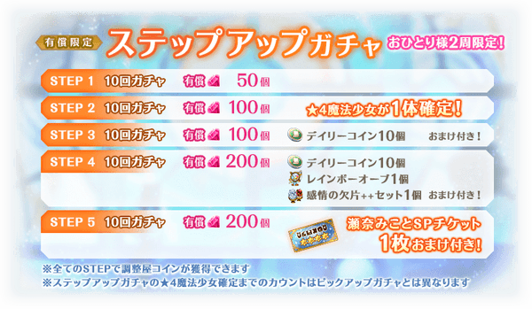 ※STEP2での★4魔法少女について、ピックアップ対象の魔法少女が確定するわけではございません。