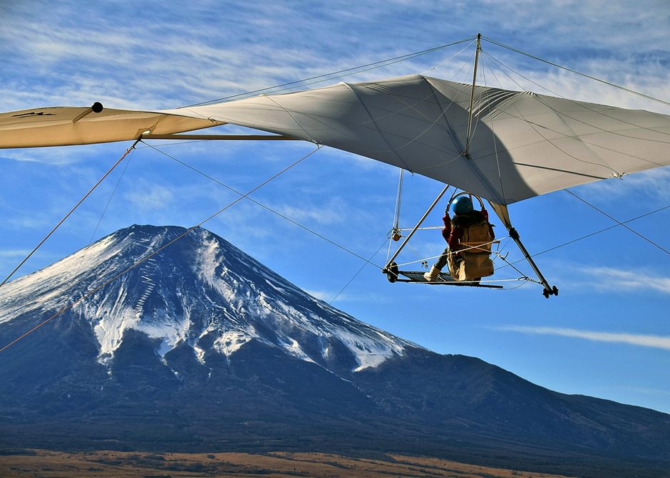 ハンググライダーに乗り、大空へ飛び立てるスカイスポーツ体験施設。4歳以上から体験可能で、遮るものが一つもない富士山の大パノラマを楽しめます。他のスカイスポーツと比べ、スピードの出やすいハンググライダーはスリルと爽快感を思いっきり楽しめます。