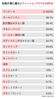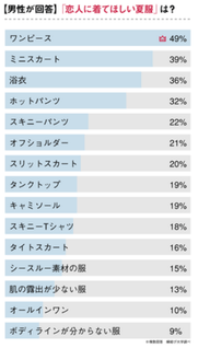 バレンタインが終わったら春夏シーズンということで、夏に向けてのファッションを考える時に、ワンピースに人気が集中する傾向は肌感覚として感じられるところですが、実は、実際のアンケートにもその結果が如実に表れています。