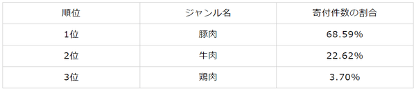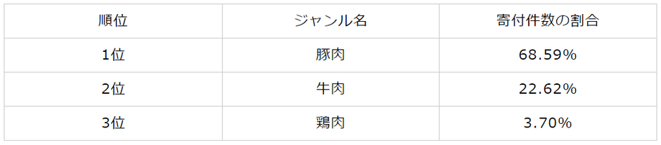 肉に寄付をした人の7割近くが豚肉を選択したことになります。