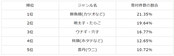 第1位から第3位はふるさと納税の中で食品ジャンルの強さを見せつける結果となりました。
