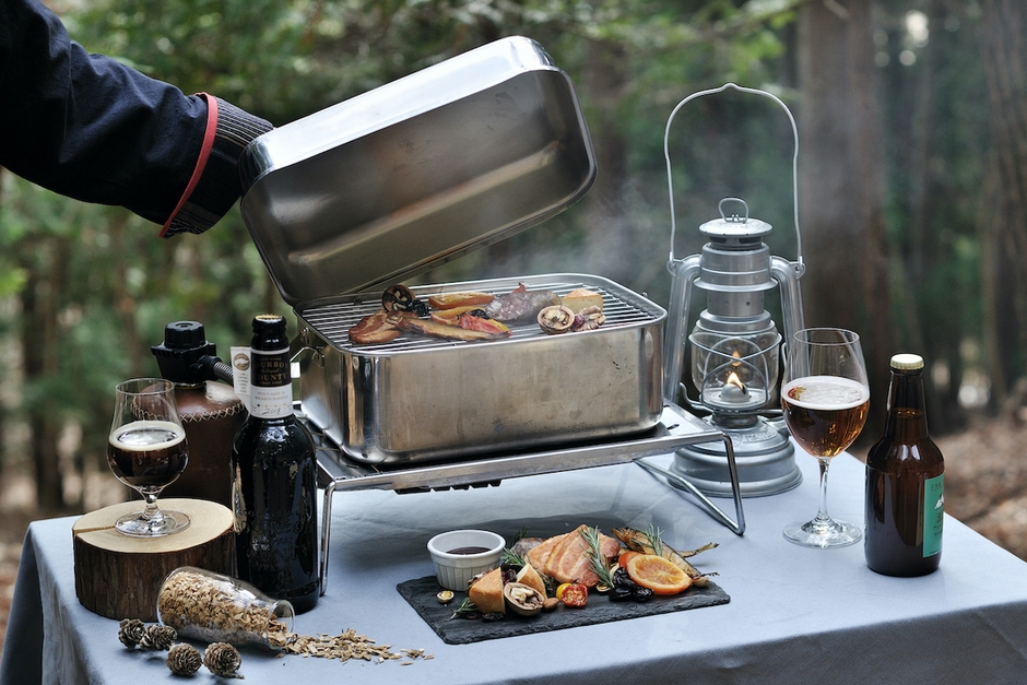 当プログラム専用の森のプライベート空間に、童心をくすぐる秘密基地として、木々の間に浮かぶ空中テントを用意します。空中テントの下では、ビールと燻製のペアリングが楽しめます。ジビエのシャルキュトリーや川魚、チーズなどの食材を、グランピングマスターと一緒に燻製に仕上げます。ビールマイスターであるグランピングマスターがセレクトした、燻製に合う苦味の効いたビールとともに、アペリティフタイムを満喫できます。ダイビング後の空腹を満たした後は、浮遊感が心地よい空中テントの中でうたた寝をし、森の涼やかな空気を感じながら疲れた身体を癒します。
