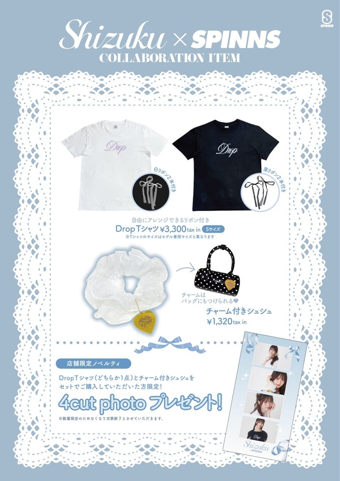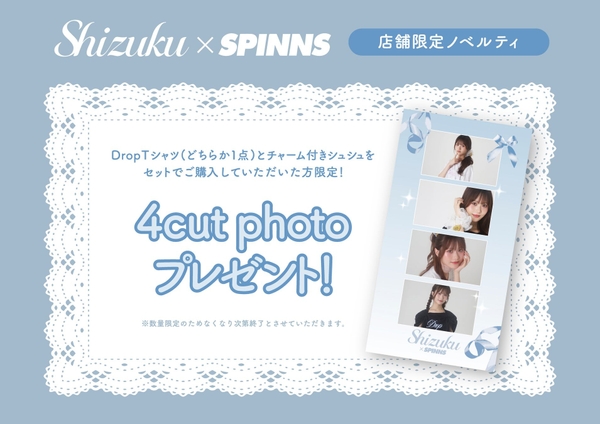 DropTシャツ(どちらか1点)とチャーム付きシュシュをセットでご購入いただく毎に、4cut photoをプレゼント!