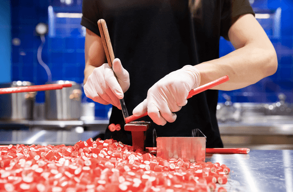 加えて、キャンディ制作パフォーマンスもYouTube再生回数が3000万回を記録する人気となっていることから、キッチンと店舗をネットでつなぎ、キャンディ制作をライブで楽しめるように43インチ液晶ディスプレイを設置。同時に、動画で職人が実際に使用している道具を取り寄せて、お客様がキャンディを職人のようにカットして持ち帰ることができるサービスを開始します。