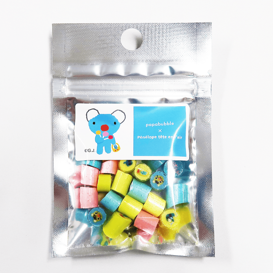 同コラボレーションでは、「ペネロペ」・「アラジン」・「ストロンボリ」・「ドゥドゥ」、そしてひらがなで「うっかり」と描かれた5種類のキャンディを販売いたします。また「パパブブレ青山店」では、ペネロペが店舗をジャックし、店内のあちこちを「ペネロペ」のアートで装飾いたします。