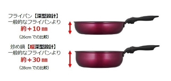 サイズのラインアップは、超深型「炒め鍋」に20cmサイズが新たに登場し、全8アイテムとなりました。