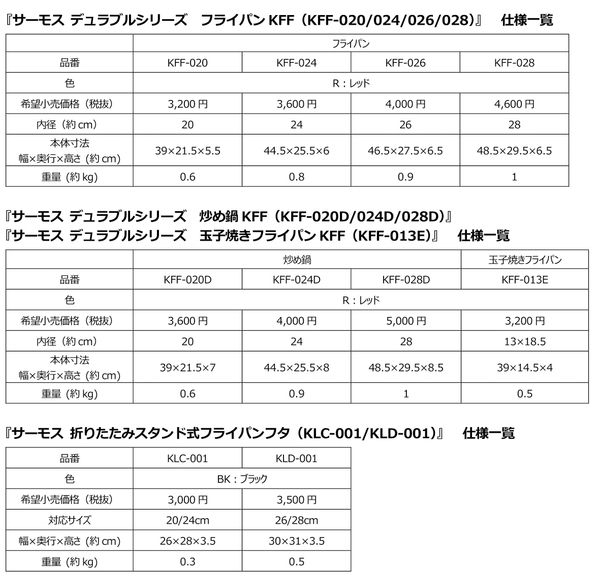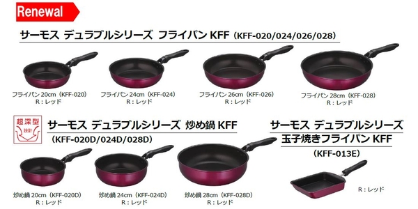『サーモス デュラブルシリーズ フライパンKFF(KFF-020/024/026/028)』 『サーモス デュラブルシリーズ 炒め鍋KFF(KFF-020D/024D/028D)』 『サーモス デュラブルシリーズ 玉子焼きフライパンKFF(KFF-013E)』