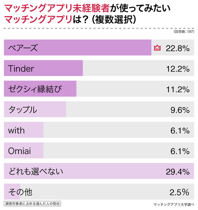 マッチングアプリ未経験者でも21.5%が「ペアーズ」を使ってみたいと回答!
