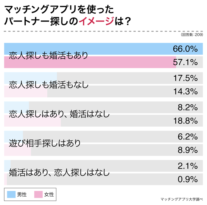 女性のほうが「マッチングアプリは婚活には使えない」という認識強い