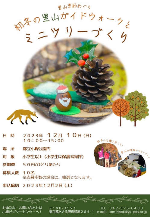 【12/10(日)開催!】小峰公園『里山季節めぐり』~初冬の里山ガイドウォークとミニツリーづくり~