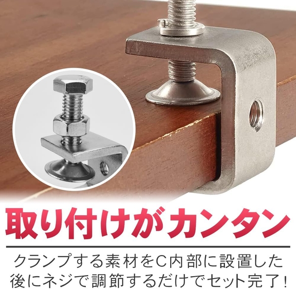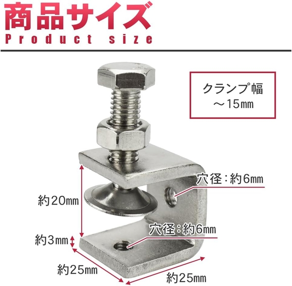 Cクランプは切断・溶接・穴あけといった作業にも重宝します。防錆性&耐腐食性に優れたステンレス鋼を採用しており、劣化や摩擦に強く長い間ご愛用いただけるツールです。四隅を押さえられるように4個セットでご用意致しました。