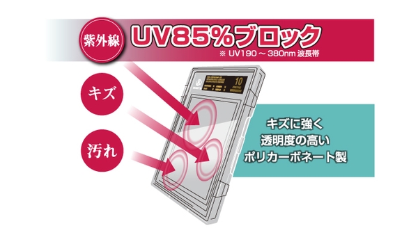 高い紫外線の波長帯をブロックできるフルプロテクトパックケースに収納することで、鑑定済みケースごと紫外線から守ることができます。