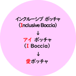 障がいの有無・性別・年齢・ 国籍を問わず、誰でも参加できるボッチャを通して、愛(コミュニケーション)を繋げていこう!という意味が込められています。