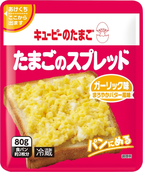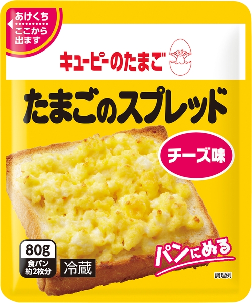 「たまごのスプレッド」シリーズは、パウチに入ったチルドのパン専用卵スプレッドです。新商品は、食感がよく、朝食のメニューとして人気が高いショルダーベーコンと、ゆで卵をチーズ風味のソースで混ぜ合わせました。ゆで卵の固形感やソースの量を調製することで、パンに塗りやすくしています。また、パウチのシール形状を工夫し、スプーンを使わなくてもパウチの細口から直接パンに出せるようにしました。食パンやバターロールなどで、自分好みのメニューを手軽に楽しめます。