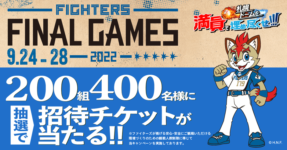 [すべての感動に、ありがとう。]ファイターズ FINAL GAMES2022の招待チケットを抽選で200組400名様にプレゼント!!