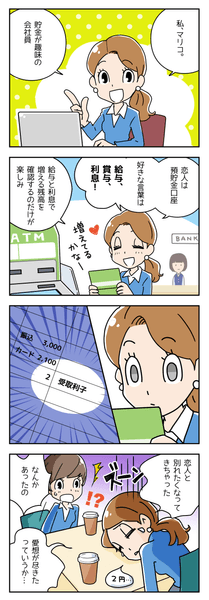 主人公は貯金が趣味のOLマリコ。彼女の幸せを一緒に見守りましょう。