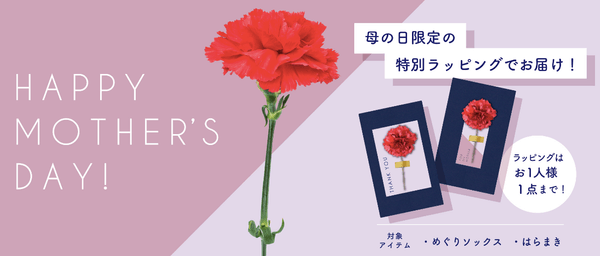 自社オンラインストア「eume ONLINE STORE」(https://eume.store)にて、人気商品「めぐりソックス」と「はらまき」を母の日限定ラッピングで数量限定販売いたします。