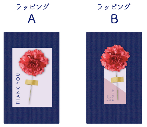 対象商品をお買い上げの方に、数量限定で「母の日ラッピング(2種類よりお選びいただけます)」にてお届けいたします。