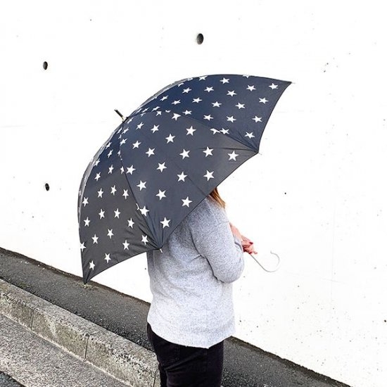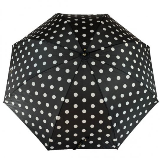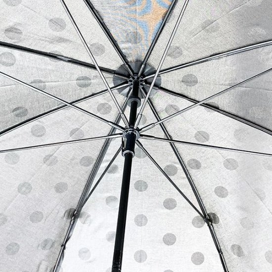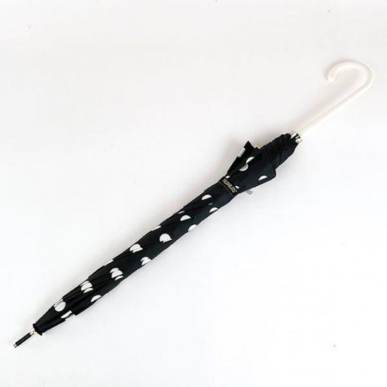 ブラックカラーにホワイトのドット柄がシンプルな、スヌーピーの傘です。クールなモノトーンのデザインで、男女問わず使えるクールさですよね。