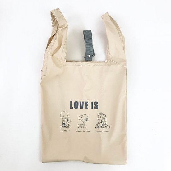 最後は、アイボリーにハグデザインのエコバッグです。スヌーピーとチャーリーブラウンのハグしている姿、かわいいんですよね~♡ライナスはもちろん、ブランケットLOVEですね。