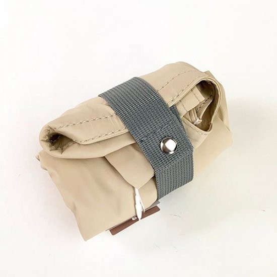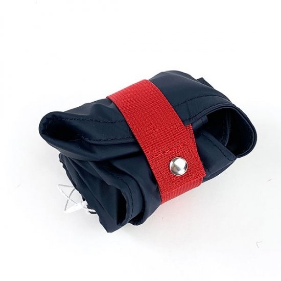 折りたたんで丸めてヒモで留めれば、コンパクトに持ち運べちゃいます。赤いヒモがアクセントになっていて、折りたたんだ姿もかわいいんです。