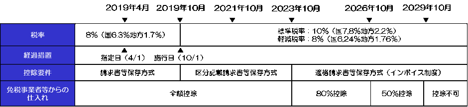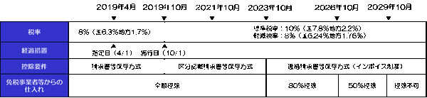 表の通り、2029年10月以降は適格請求書発行事業者からの仕入でなければ仕入税額控除ができないこととなります。