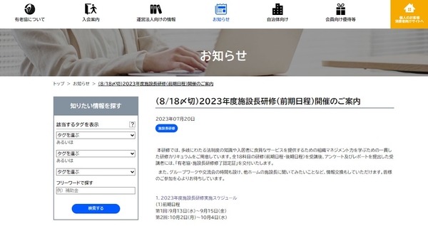 有料老人ホーム、サービス付き高齢者向け住宅の施設長必見!! 施設長オンライン研修(前期日程)申込受付中!!