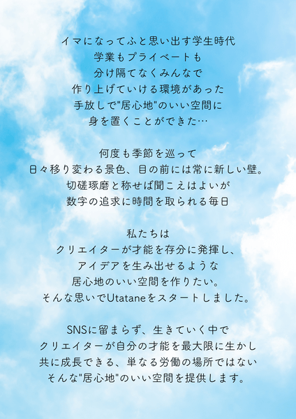 “信頼の輪”で作り上げるクリエイターエージェンシー「株式会社Utatane」を設立。クリエイターに寄り添ったサポート・育成を行う。
