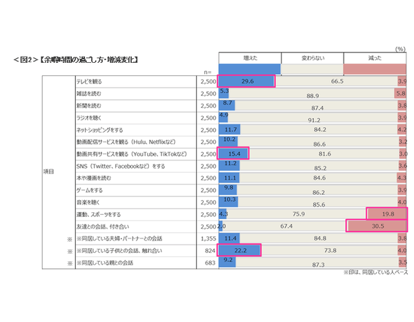 新型コロナウイルスによって生活習慣が大きく変化 「運動・スポーツ」が減少、「子どもとの会話・触れ合い」が増加