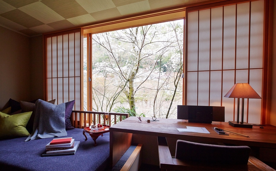 爽やかな高原の風が通る気持ちのよい星のや軽井沢のテラス、島の伝統建築を踏襲した星のや竹富島の戸建て、ビル街の夜景に臨みながら裸足で踏みしめる星のや東京の畳敷きのリビングなど、星のやの客室はそれぞれが個性豊かな設計になっています。また、スタンダードタイプでも約40㎡と十分な広さがあり、一日中こもっていても窮屈さを感じることはありません。星のや全室が無線Wi-Fi完備のため、お仕事したり、読書したり、今の自分にとって大事なことに集中できる客室です。