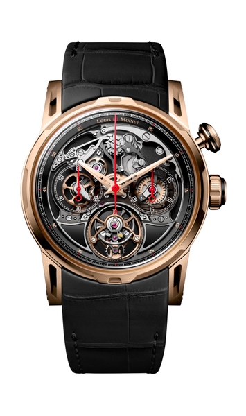 ルイ・モネは、ブランドのルーツである時計師 ルイ・モネによる世界初のクロノグラフ発明から200周年にあたる2016年に、『メモリス』をリリースしました。クロノグラフ機構を文字盤側に配置することで、クロノグラフの魅力を視覚的に堪能できる時計が誕生したのです。