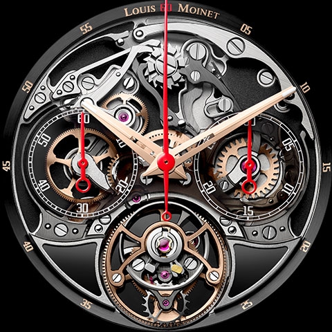 ルイ・モネの全ての時計は、一点物もしくは限定品として生産され、『コズミック アート』と『メカニカル ワンダーズ』に分類されます。多くの作品に、宇宙からの隕石や太古の素材を用いた希少なパーツを使用しています。「独自性」「創造性」「アート&デザイン」「希少性」の4つのバリューを掲げており、UNESCOやグッドデザイン賞、レッド・ドット・デザイン賞を始め、数々の権威ある機関・大会から30以上の表彰を受けています。