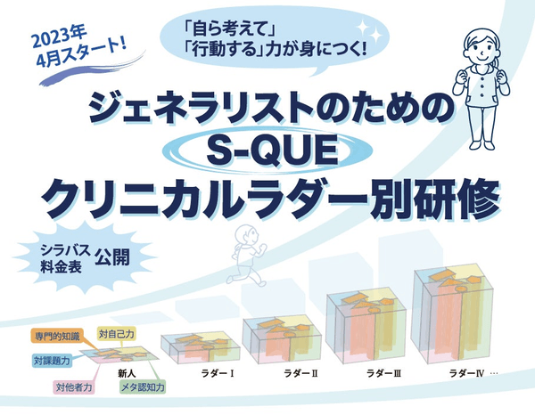「S-QUEクリニカルラダー別研修」は、ジェネラリストのためのクリニカルラダーに基づいて、新人看護師からベテランまで全ての段階において学べる研修プログラムを用意しました。